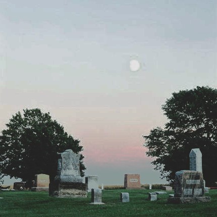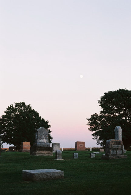 Moonrise at sunset over the old part of the cemetery.